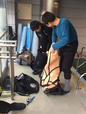 今日はオープンウォーターコースでプール講習に来ています