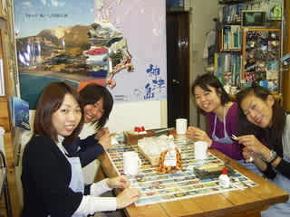 おかし食べながら楽しく貝殻アクセサリー作ってまーす。