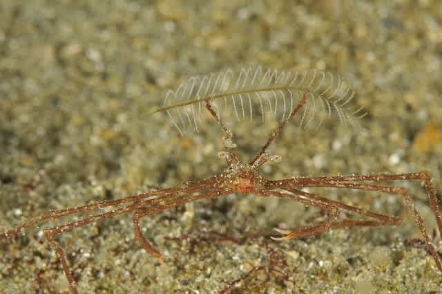 なんとそこにはものすごくちっちゃいヒレネジが居るではないですか!でも臆病らしく、巣穴からちょっと