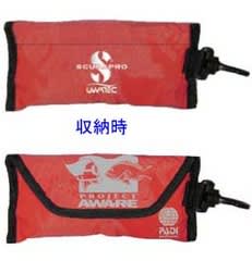 この「AWAREクリ-ンアップバック」は、水中及び陸上でのクリーンアップ活動等に活用できる簡単なゴミ回収用小型メッシュバックです。フック付でBCDに簡単に装着でき、ダイビング中も邪魔にならないコンパクト設計で、使用時はアウターバックのベルクロをはがすだけで中から簡単にメッシュ部分を取り出すことが出来るデザイン(図参照)となっています。