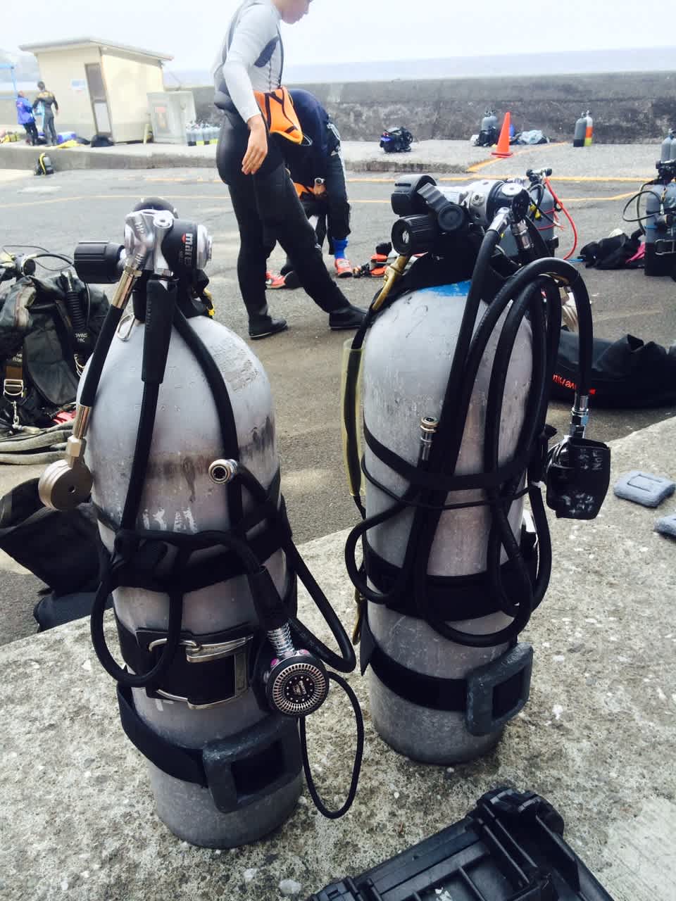 事前に水中にシリンダーを置いて来て、BCDと軽器材だけ