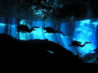 内容はメキシコの”セノーテ”やカリブの海で潜って、水中で透明度を実測したりするということでした。”セノーテ”はユカタン半島にある石灰質の土地が侵食されてできた洞窟に湧き水がたまっているポイントで、ケーブ(洞窟)ダイビングで有名です。しかし洞窟ダイビングには特別なトレーニングが必要なため、一般ダイバーは洞窟内には入れませんが、それでもものすごい透明度の水にダイビングするだけでも大変に人気のあるスポットです。