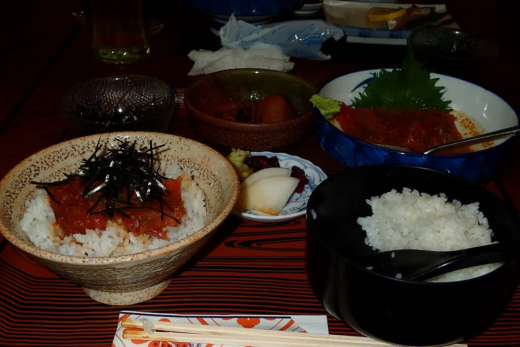 その橋杭岩を見ながら温泉につかって疲れを癒したり、串本名物【かつを茶漬け】を