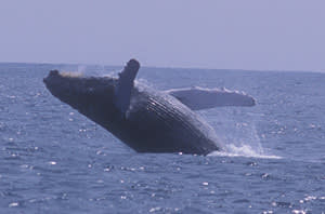 有名で、体ごと飛び出すブリーチングやペックスラップ(胸鰭で水面を打つ)、