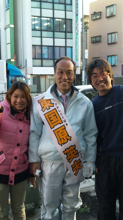 たすきをかけたあの候補がいらっしゃいました。